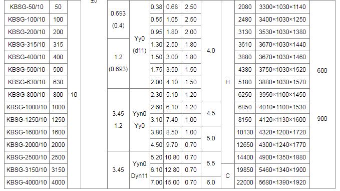 3.礦用變壓器技能數據(一般型)
