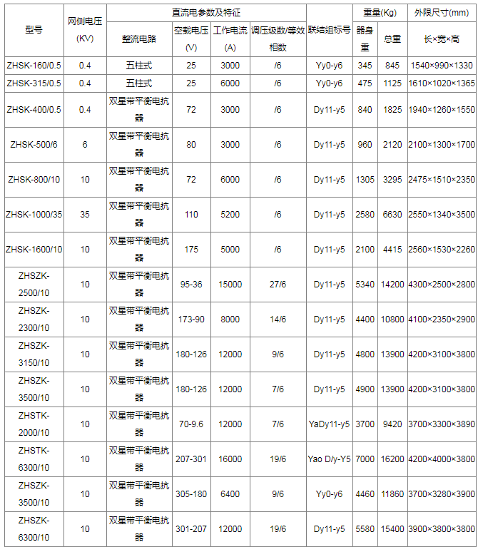 電化學(xué)整流變壓器技術(shù)數(shù)據(jù)
